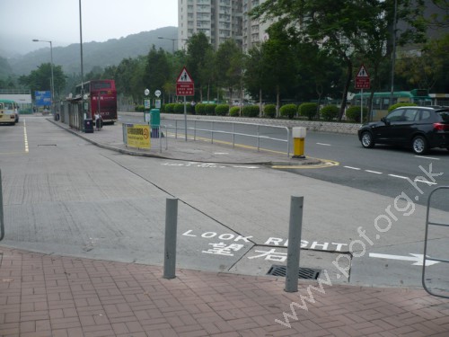 連接車輛內汽車路及橫過汽車路的斑馬線,通道是寬闊平坦無障礙的巴士候車島,候車島有多個,均凸出站內汽車路一級,前設有斜面連接斑馬線,無觸覺引路徑,前端地面上髹上黃色國際暢通易達標誌,標示是輪椅使用者候車位置,是經本會反映問題後的改善工程.