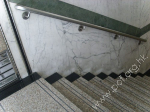 是一段9級踏板的梯級,踏板高闊適中,兩旁有扶手,底頂無觸覺警告帶。