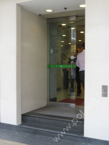 通道寬闊,門前有兩級梯級,門口設有兩扇玻璃推門,無觸覺引路帶。
