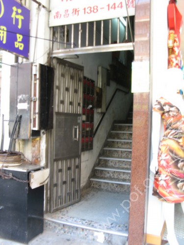 通道足1.05,門口有一級梯級及設有兩扇不銹鋼閘,裡面是梯級通道,無觸覺引路帶。