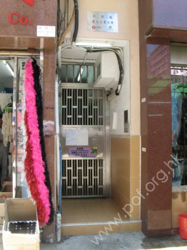 通道足1.05米,門前有一級梯級,門口設有一扇不銹鋼密碼閘,旁邊有密碼按鈕,裡面是梯級通道,無觸覺引路帶。