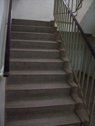 梯級每段10級踏板,較陡斜.兩旁有扁平扶手.底頂部無觸覺警告帶.