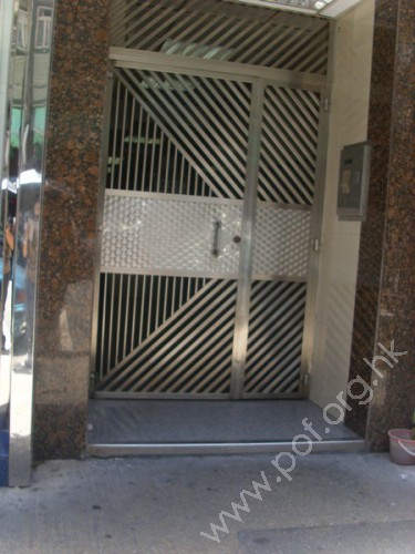 通道闊足1.05米,入口有一級梯級,設有一扇密碼開啟的不銹鋼閘,旁邊有密碼按鈕,無觸覺引路帶。