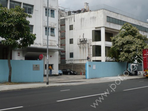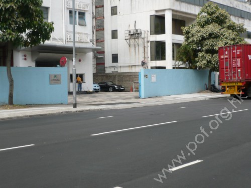 連接汽車路與旁行人路,通道是寬闊平坦的車輛出入口閘門,前設下斜路緣連接汽車路,橫過汽車出入口的行人路無觸覺引路徑,閘門是淺藍色金屬閘門.