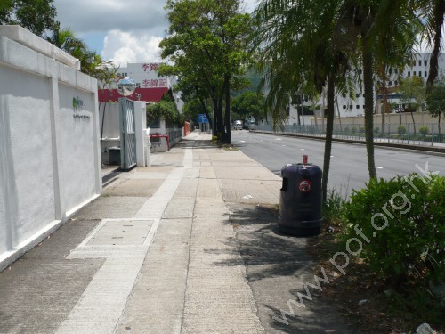 通道是寬闊平坦的車輛出入口閘門,前設下斜路緣連接汽車路,橫過車輛出入口的行人路無觸覺引路徑,閘門是灰色金屬框架對開閘門.