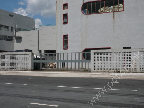 通道是寬闊平坦的車輛出入口閘門,前設下斜路緣連接汽車路,橫過車輛出入口的行人路無觸覺引路徑,閘門是灰色金屬框架對開大閘門.
