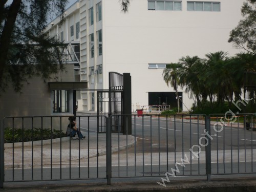 毗連行人出入口閘門,通道是寬闊平坦的車輛出入口閘門,橫過汽車出入口的行人路無觸覺引路徑,閘門是深棕色金屬框架對開大閘門.
