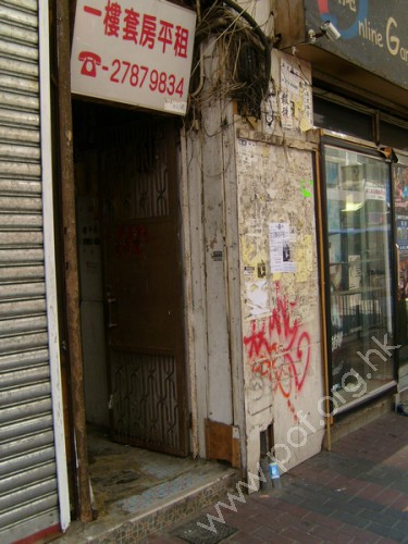 通道不足1.05米,門口有一級梯級及設有一扇鐵閘,裡面是梯級通道,梯級踏板高闊度適中,兩旁無扶手,無觸覺引路帶。