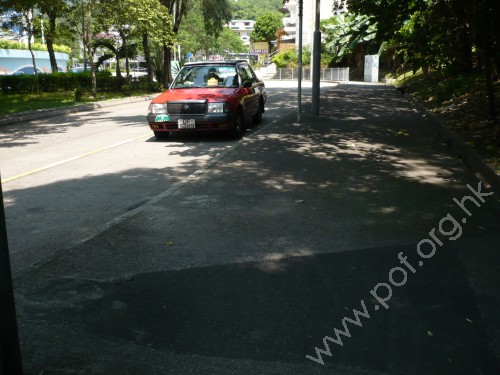 連接汽車路與旁行人路,位於行人路及計程車候車處,面積寬闊,斜度低,斜面無觸覺警告帶,連接汽車路路邊石壆高度達20毫米,頂端佔據整個行人路,無行人路保留面積,視野開揚.