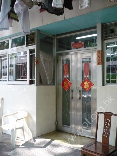 連接與住宅之間行人路,通道是一扇門闊度的院舍出入口,前臨兩級台階障礙,無設斜道輔助,無觸覺引路徑,門是不銹鋼粗框單邊玻璃推門.