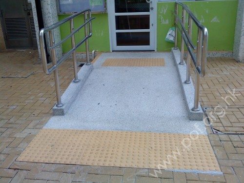 斜道闊足1.05米,斜度適中,兩旁設有扶手,底頂均設有觸覺警告帶。