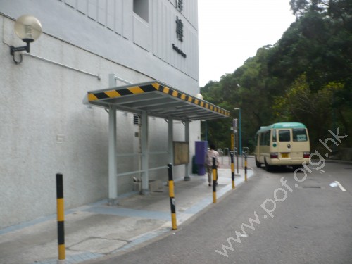 連接汽車路,通道是寬闊平坦無障礙的行人路及候車處,行人路連接汽車路是平坦的,設有一排黃黑色相間金屬圓柱,柱間寬闊,行人路無觸覺引路徑.
