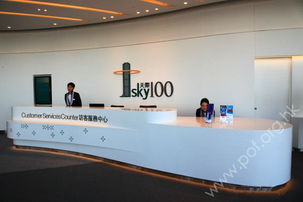 連接商場2樓行人通道,寬闊平坦,入口是開放式無門廊設計,門頂有醒目的「天際SKY100」發光招牌;往前進內是餐廳、觀景台收費入口(收門票)等設施,無觸覺引路帶。