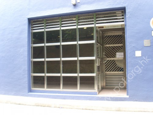 通道寬闊平坦,門口設有兩扇密碼不銹鋼閘,旁邊有密碼按鈕,有觸覺引路帶引至密碼按鈕前。
