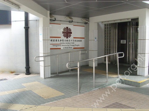 斜道寬闊,斜度低,兩邊設有不銹鋼欄杆式扶手,底頂均設有觸覺警告帶。