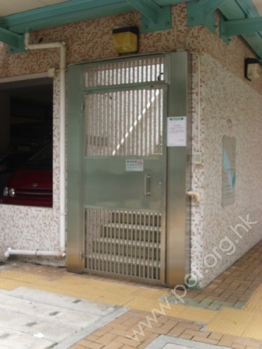 通道足1.05米,入口設有一扇不銹鋼密碼閘,旁邊有密碼按鈕,閘內只有梯級,有黃色觸覺警告帶及觸覺引路帶。
