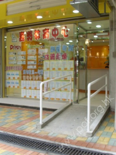 斜道闊足1.05米,斜度適中,兩旁有扶手,只有底部有平面,底頂無觸覺警告帶。