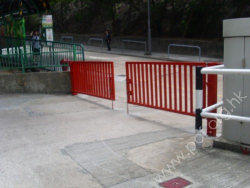 通道闊足1.05米,入口前有1級梯級,設有一扇不銹鋼閘,閘內只有梯級,無觸覺引路帶。