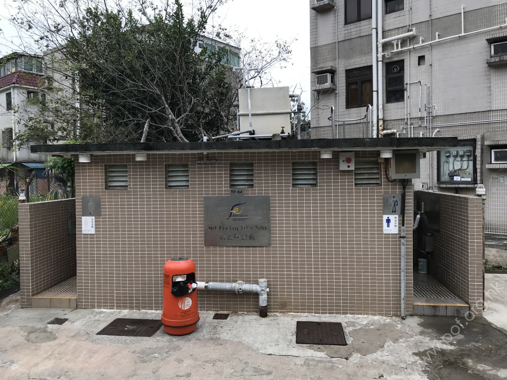 通道寬闊,公廁的入口分為左邊是女洗手間﹑右邊是男洗手間,男﹑女洗手間入口處與地面之間有一級踏板,僅於踏板頂端設有觸覺警告帶; 門邊牆上均有表示廁所性別的觸覺點字牌,沒有觸覺引路帶。