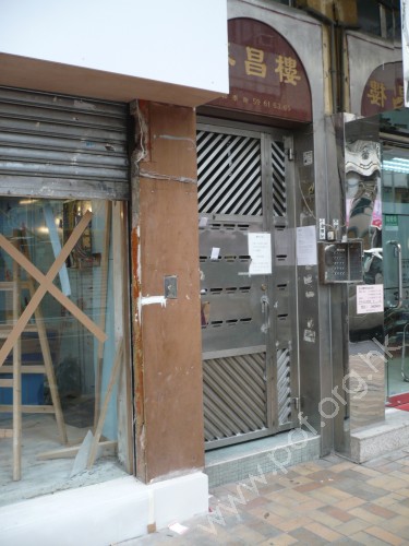 連接汽車路旁行人路,通道是夠闊的住宅正門門廊,連接一扇閘門闊度的住宅正門閘門,前臨一級台階障礙,無設斜道輔助,無觸覺引路徑,閘門是不銹鋼面框單邊閘門,閘門設有門禁系統.