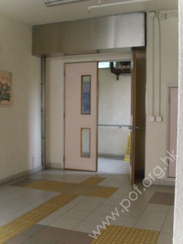 通道闊不足1.05米,平坦,入口設有一扇捲閘及一扇粉紅色木門,無觸覺引路帶。