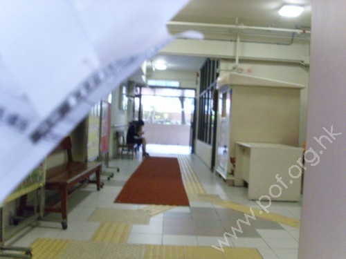 通道寬闊,平,沿途設有多個通道,是活動室入口,可惜均有一級障礙,靠牆壁上設有扶手,無觸覺引路帶。