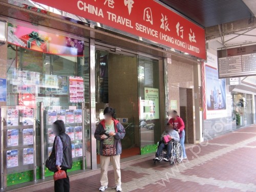 通道寬闊,入口有一級梯級及設有一扇拉起的捲閘,閘內左邊是往上的梯級通往旅遊辦事處,正面是往下的梯級通往證件服務中心,無觸覺引路徑。
