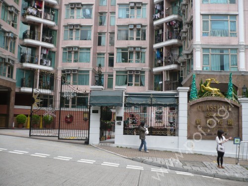 連接汽車斜路,通道是寬闊無障礙的屋苑汽車出入口閘門,毗連屋苑行人出入口閘門,往來屋苑各座住宅樓宇,兩旁行人路無觸覺引路徑,閘門是黑色金屬花框對開大閘門.