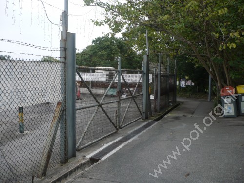 連接沿河畔伸延往來鄉村的行人路,通道是寬闊平坦無障礙的市場出入口閘門,往來批發市場內,行人路無觸覺引路徑,閘門是灰色金屬框鐵網對開閘門.