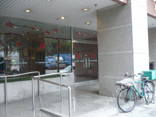 連接汽車路旁行人路,通道是寬闊的大廈正門,有一級台階障礙,旁設的斜道亦高出行人路一級成障礙,無觸覺引路徑,門是玻璃對開推門,經本會投訴跟進後,斜道高出一級己經填平成無障礙通道.