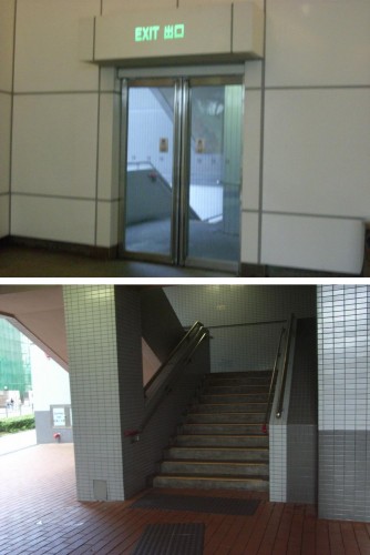 通道設有6級梯級,兩旁設有扶手,只在頂部設有觸覺警告帶,而底部則沒有.