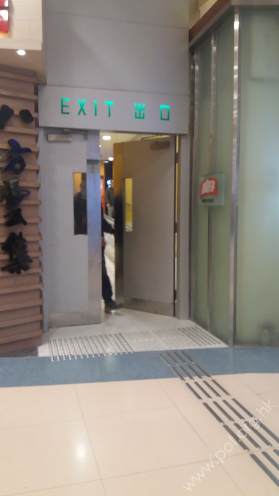 是唯一一條通往商場的暢通易達通道,設有暢通易達標誌,吊箱內空間寬闊,按鈕有觸覺點字,三面有扶手,設有3語廣播和視像顯示前往方向及所在的樓層.