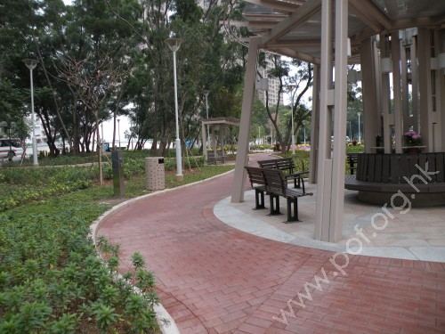 連接休憩處各個出入口,通道是寬闊平坦無障礙的休憩處內行人路,以紅磚鋪成,蜿蜒伸延,兩邊是植物區,局部有休憩坐椅,無觸覺引路徑.