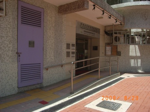通道一邊有一級的梯級,兩旁沒有扶手,頂部和底部都無觸覺警告帶.另一邊是斜道,一旁設有牆壁及扶手,另一旁設有欄杆兼扶手,底頂兩端都有觸覺警告帶及設有黃色的觸覺引路徑導引至門口.