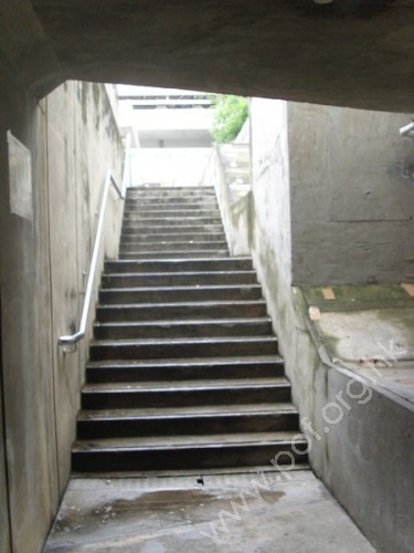 通道寬闊,設有兩段10餘級梯級連接隧道內,只有單邊扶手,底頂和平臺都無觸覺警告帶。