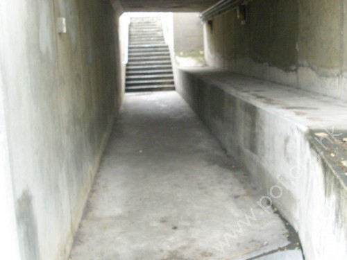 通道闊足1.05米,平坦,無扶手,無觸覺引路帶。隧道外是梯級通道.