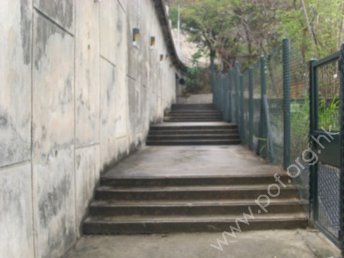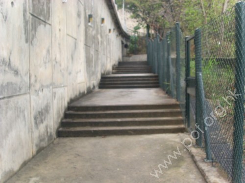共有四段四級梯級,每段平台距離寬闊,踏板高闊適中,無扶手,底頂及平台無觸覺警告帶。