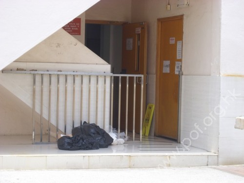 通道闊足 1.05米,入口前有一級梯級,設有兩扇木門,無觸覺引路帶。