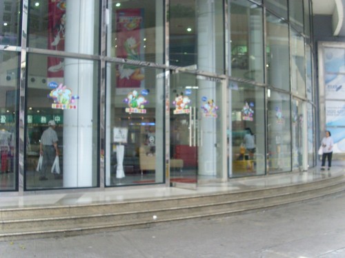 入口處有3級梯級,設有向外拉的玻璃門,兩旁沒有扶手,無觸覺警告帶.