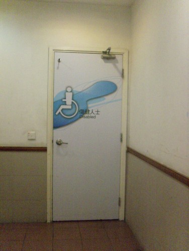 廁所門有觸覺點字或凸字標誌,顯示男廁或女廁;標誌離地0.9米至1.5米間。