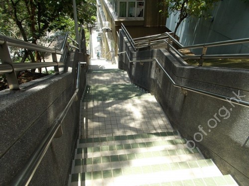 是一段9級梯級,踏板高闊適中,兩旁有扶手,底頂部無觸覺警告帶。