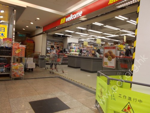 通道寬闊,平坦,設有拉起的卷閘.無觸覺引路帶。