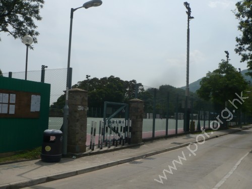 連接鄉郊行人路,通道是平坦無障礙的遊樂場球場出入口閘門,往來場內足球場及籃球場,出入口設有一排三支黑色白色相間金屬圓柱,使出入口變得狹窄,無觸覺引路徑,閘門是綠色金屬框架鐵網對開閘門.