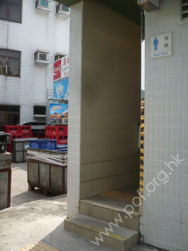 連接汽車路旁鄉村行人路與公廁男洗手間出入口,共有兩級梯級,頂底兩端設有黃色觸覺警告帶,兩邊無扶手及牆壁.