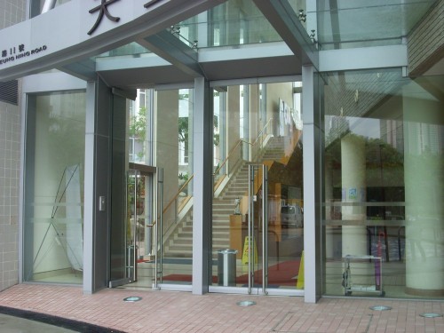 斜道比較狹窄,是鐵板做成,頂部即是門口.玻璃門是向外開啓,緊貼斜道一邊.輪椅僅可通過,設有單扇玻璃門,兩旁有欄杆兼扶手,底頂無觸覺警告帶.