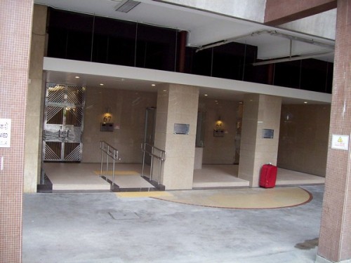 通道寬闊但有1級梯級,67號門前設有斜道輔助出入.斜道闊過1.05米,兩旁有扶手,底部/頂部有黃色觸覺警告帶.