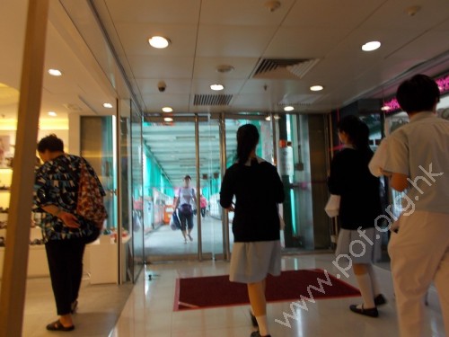 通道寬闊,平坦,入口設有兩扇對開玻璃推門,無觸覺引路帶。