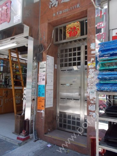 通道足1.05米闊,入口有一級梯級,設有一扇不銹鋼密碼閘,旁邊有密碼按鈕,閘內只有梯級,無觸覺引路帶。