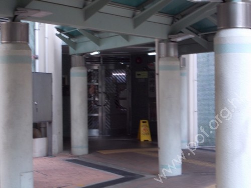 黃色的觸覺引路帶,由外面公共設施伸延至大廈正面的有蓋出入口前。