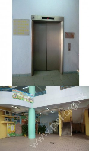 連接G樓至2樓及天台。有國際暢通易達標誌,升降機門的淨空間闊1.09米,吊廂闊1.8米x1.5米,內三壁設有金屬管狀扶手,高0.9米;內外按鈕位置低於1.2米,設有點字、觸覺記號、星形標誌及視像顯示;緊急警號按鈕是黃色及鐘形凸字標誌。開關門時有聲響提示,有視像指示器顯示上落方向及樓層;無語音廣播。